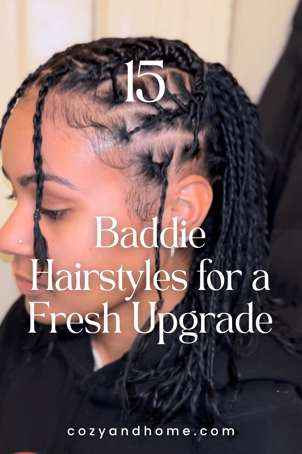 A detailed criss-cross cornrow pattern adds a creative twist to this protective style. The braids are sleek, shiny, and neatly sectioned, balancing artistry with practicality for everyday wear.