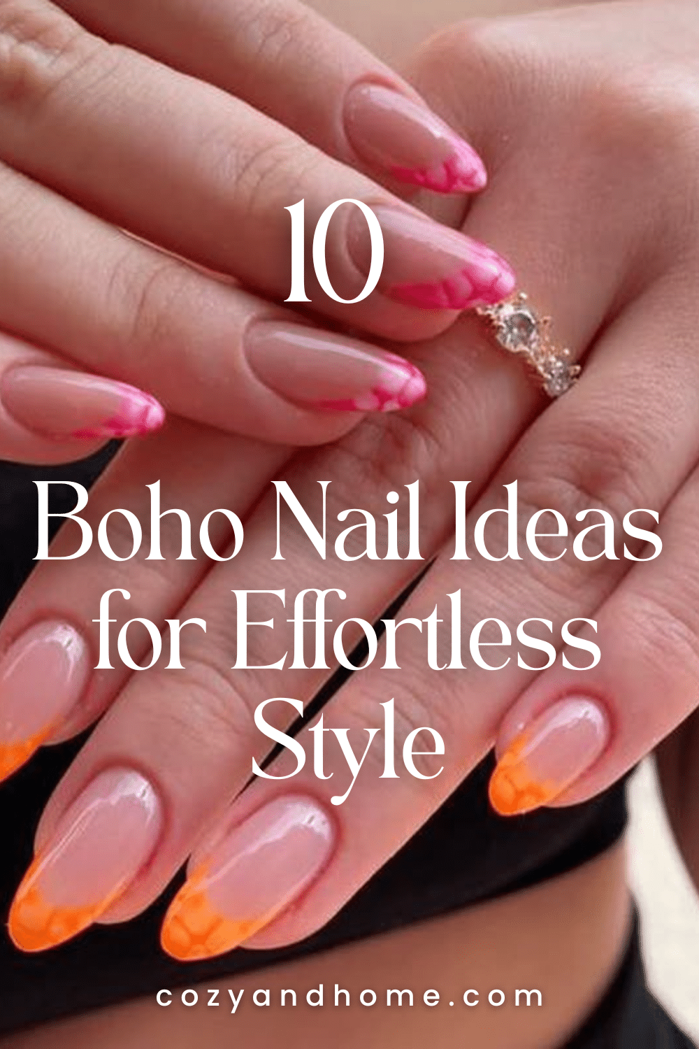 1. Coral Sunset Boho Nails - boho nail ideasCredit