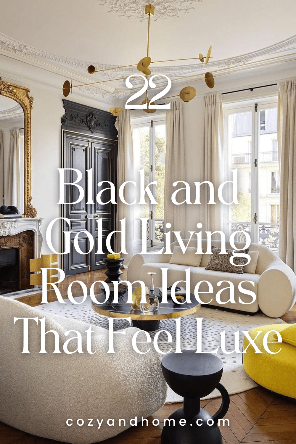 6. Parisian-Inspired Black and Gold Living Room