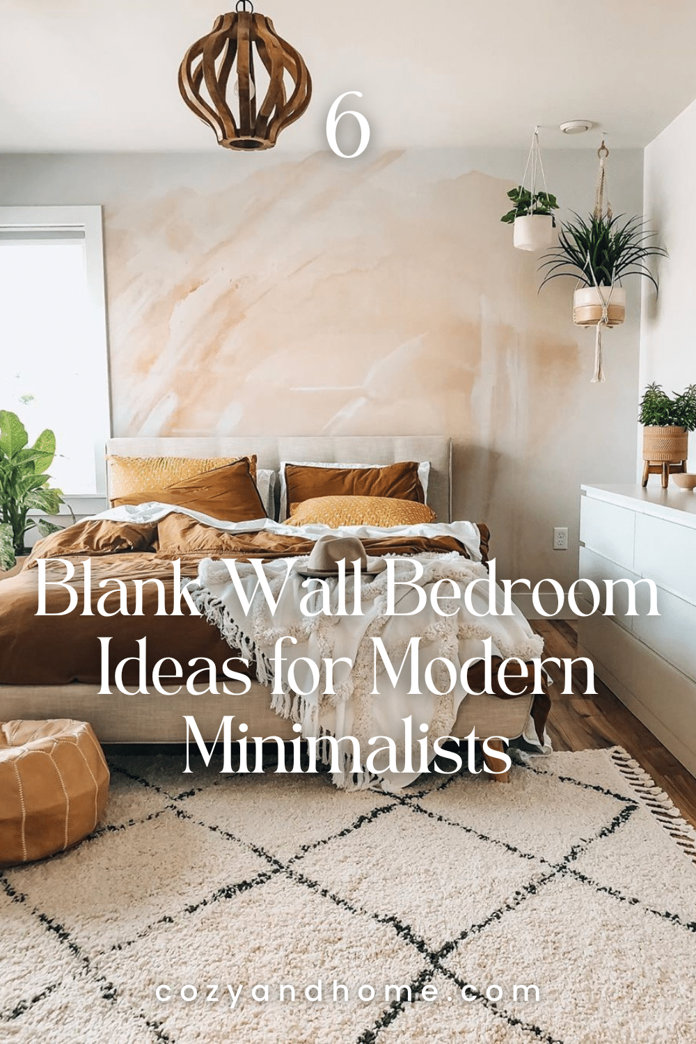 A palette of clay, white, and ochre radiates warmth and creativity. Hanging planters and layered textiles soften the space, while a watercolor-inspired wall treatment adds quiet movement. This design transforms a plain wall into a canvas for relaxed, lived-in charm.