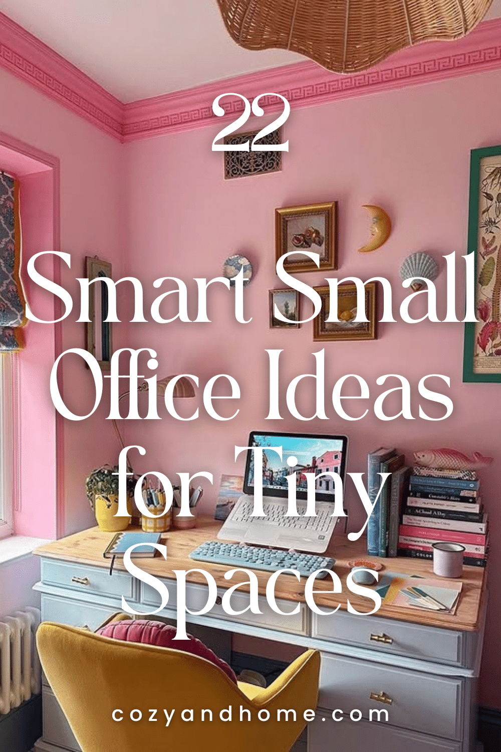7. Playful Pink Office Corner with Vintage Desk and Colorful Decor - small office ideasCredit