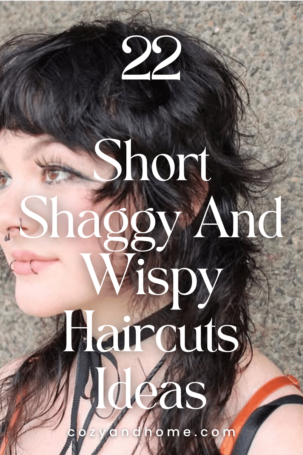 A cropped shag with piecey, separated bangs that add character and edge. The dark tone emphasizes the contrast between layers, giving the cut a defined yet effortless appearance. This style suits those who prefer a shorter length with plenty of texture and personality.