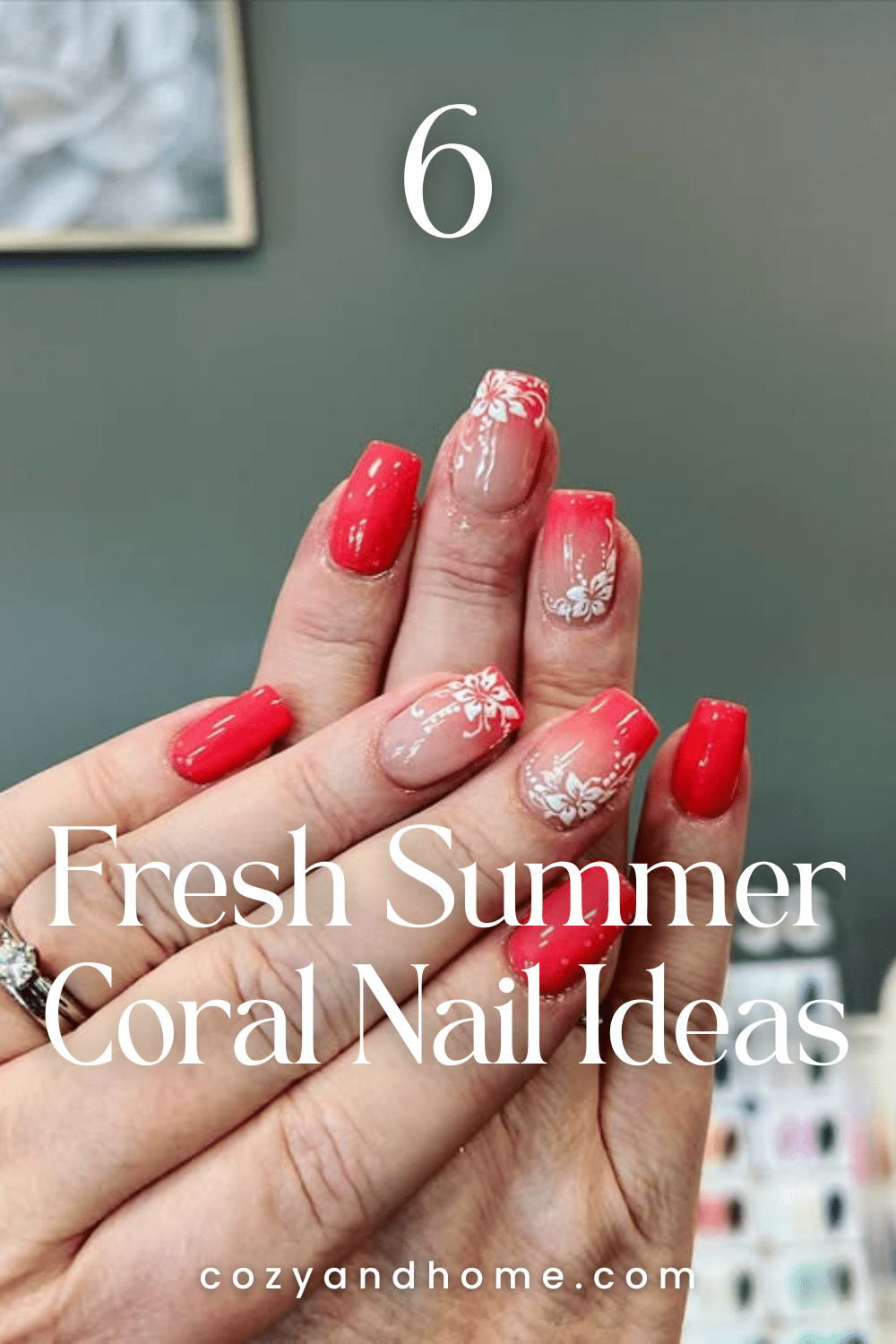 Bright coral fades into soft natural tones, topped with delicate white floral accents for a light and graceful look. This design balances color and detail beautifully while maintaining a refined finish.