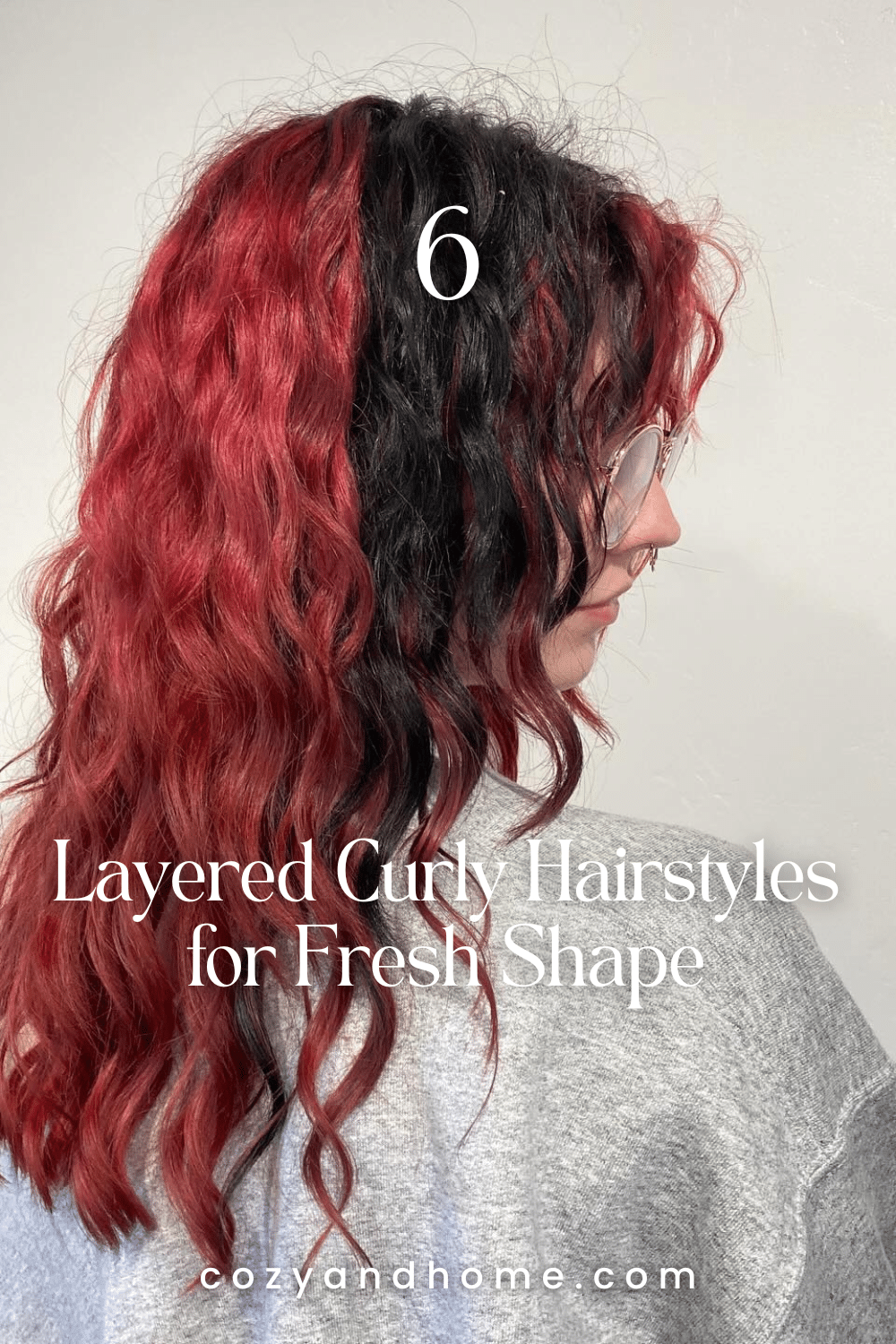 7. Layered Wavy-to-Curly Look with Red and Black Split Color