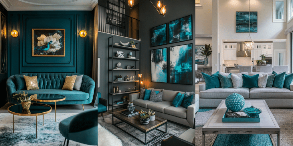 The combination of teal and grey creates a stunning balance of sophistication and vibrancy in living room design. Whether you’re