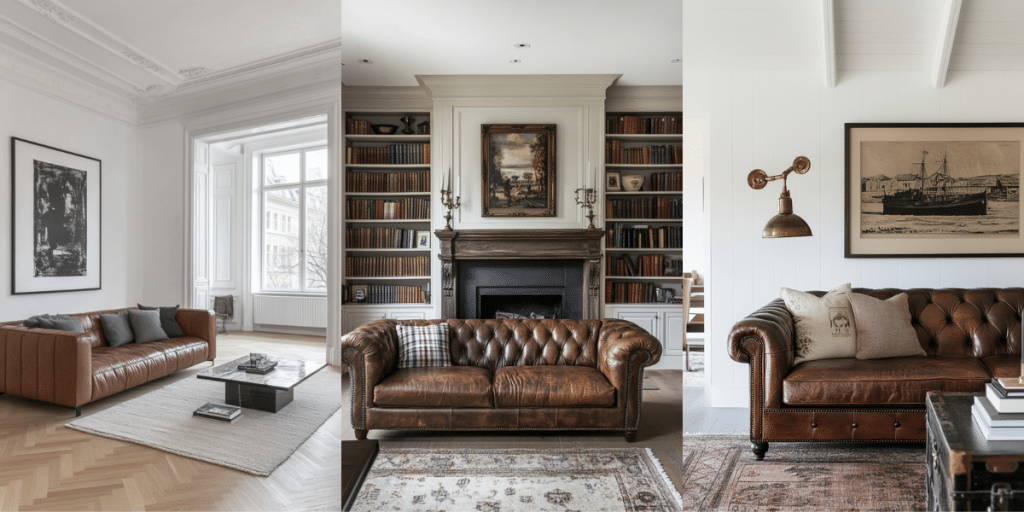 A brown leather sofa is a timeless and versatile centerpiece that brings warmth, elegance, and character to any living space.