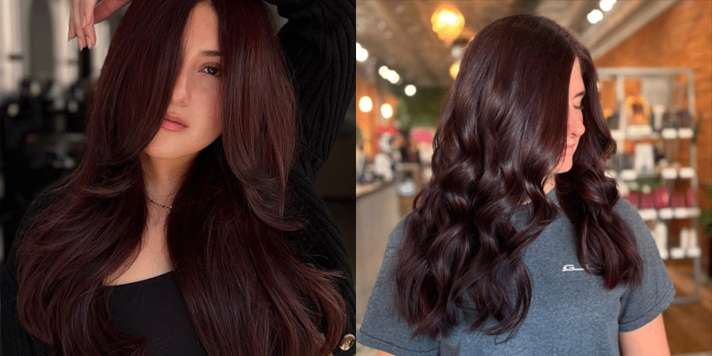 Chocolate cherry hair color is the sweet upgrade everyone is craving right now. 🍒 It mixes deep chocolate richness with