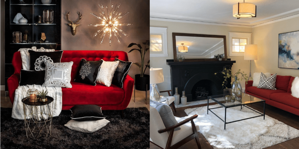 Red and black together create a living room palette that feels bold and unforgettable. 🖤❤️ This pairing has long been