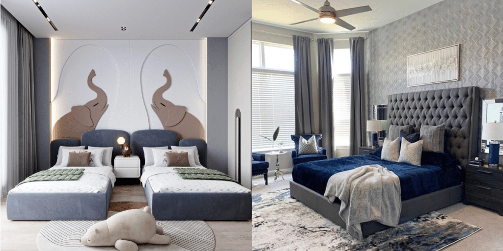 Grey and blue bedrooms are more than just a color choice—they’re a design statement. 💙 This palette balances calm sophistication