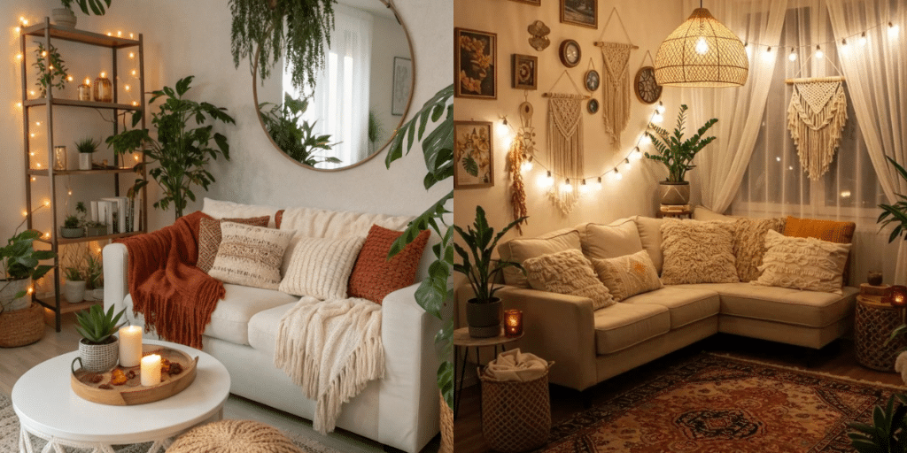Dreaming of a living room that feels relaxed, layered, and full of personality? ✨Boho style blends natural textures, earthy colors,