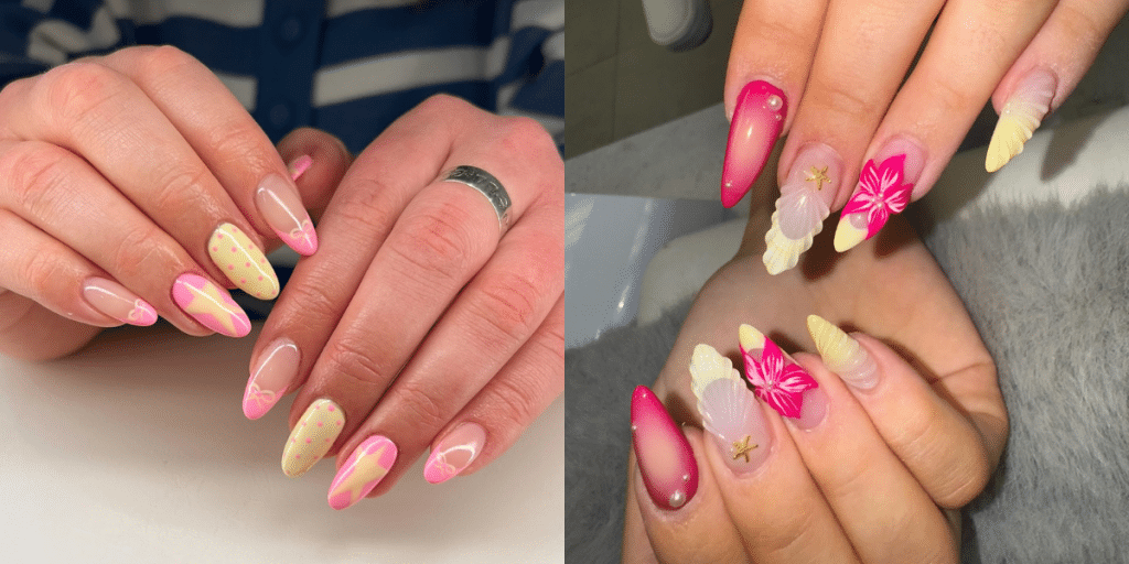 Looking for a way to brighten up your manicure? πΈ Pink and yellow nails bring playful energy and fresh style
