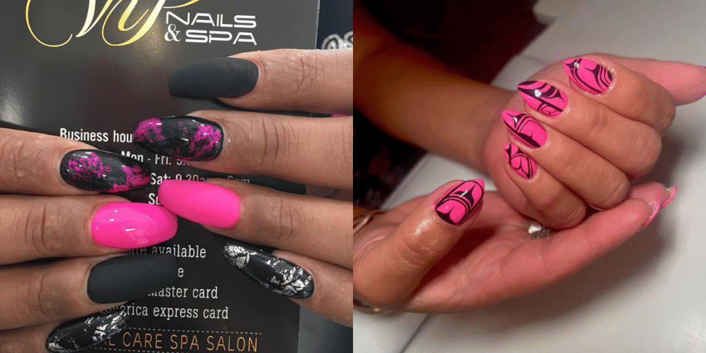 Looking for bold nails that grab attention instantly? π Pink and black together create a perfect mix of playful and