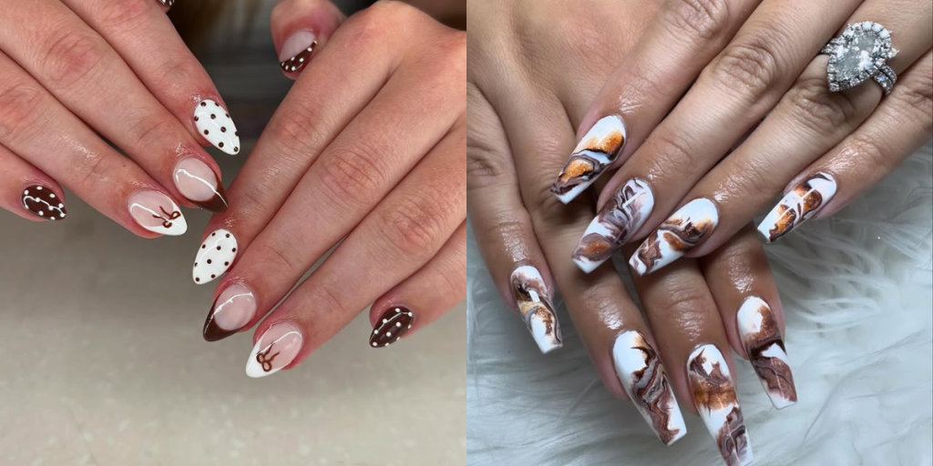 Brown and white nails are the perfect balance of rich depth and crisp contrast 🤍🤎This color pairing delivers polished elegance