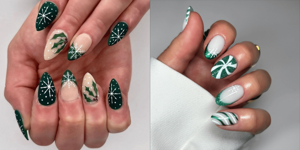 Green Christmas nails bring a fresh, festive twist that feels both classic and modern 💚From deep emerald shades to soft