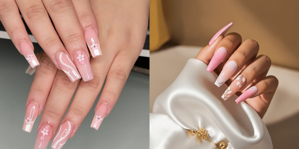 Pink coffin nails are always in style π Theyβre bold yet soft, trendy yet timeless. From glossy glam to subtle