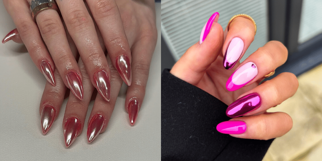 Pink chrome nails are taking over every season with their glossy, reflective finish that feels both chic and futuristic. π
