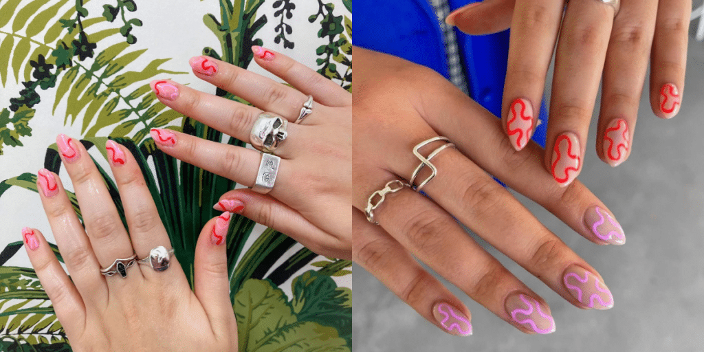 Squiggle nails are the perfect way to add personality to your manicure without going over the top ✨These flowing lines