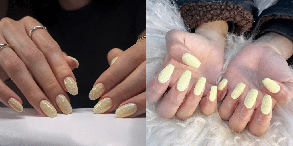 Soft pastel yellow nails are having a major moment 💛 This soft, creamy shade brings a fresh and polished feel