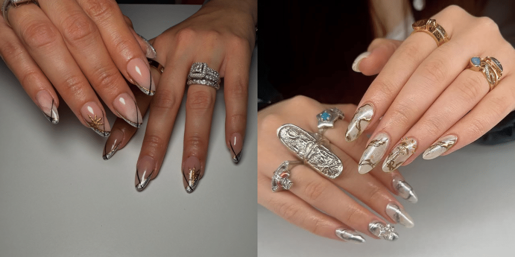 Gold and silver nails are the perfect way to add a polished, eye-catching finish to any manicure ✨These metallic tones