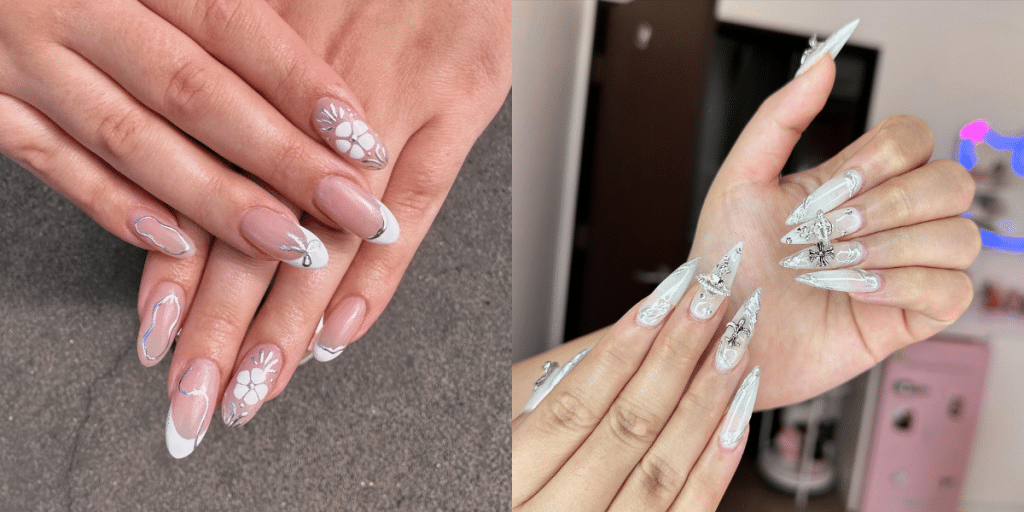 White and silver nails deliver that clean, polished look with just the right amount of shine ✨From soft French tips
