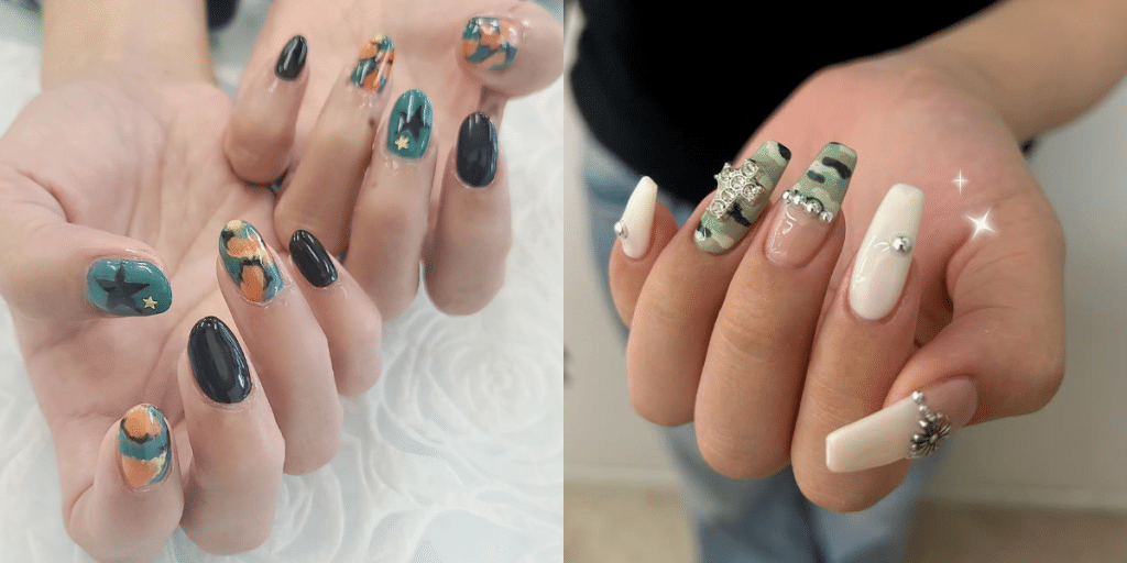 Camouflage nails are not just a style, they’re a statement. 💅 From bold patterns to chic minimal twists, camo-inspired designs