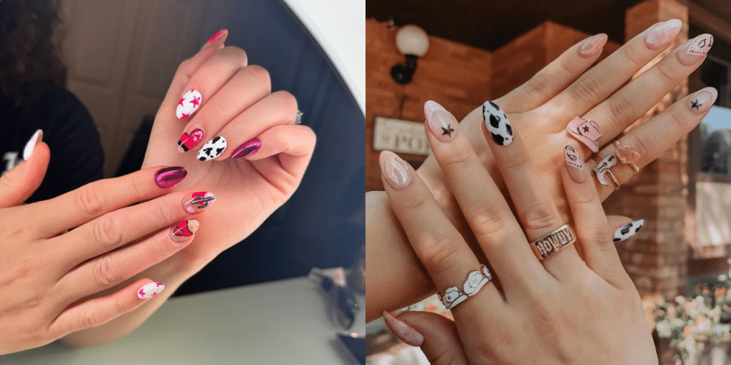 Saddle up for nails that bring western flair right to your fingertips 🤠. From cow print tips to rhinestone accents,