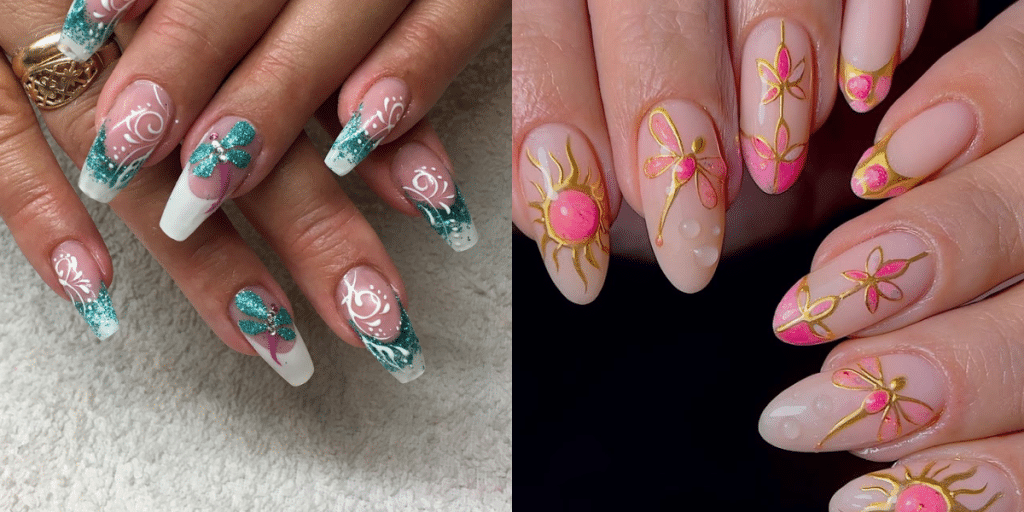 Looking for fresh inspiration for your next manicure? 💅 Dragonfly nail designs are stealing the spotlight this season. From shimmering