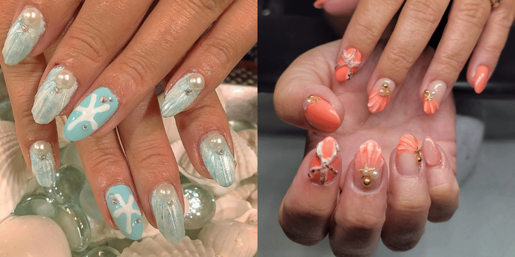 Shell nails are making waves in nail art right now π. Inspired by the sea, they bring a fresh and