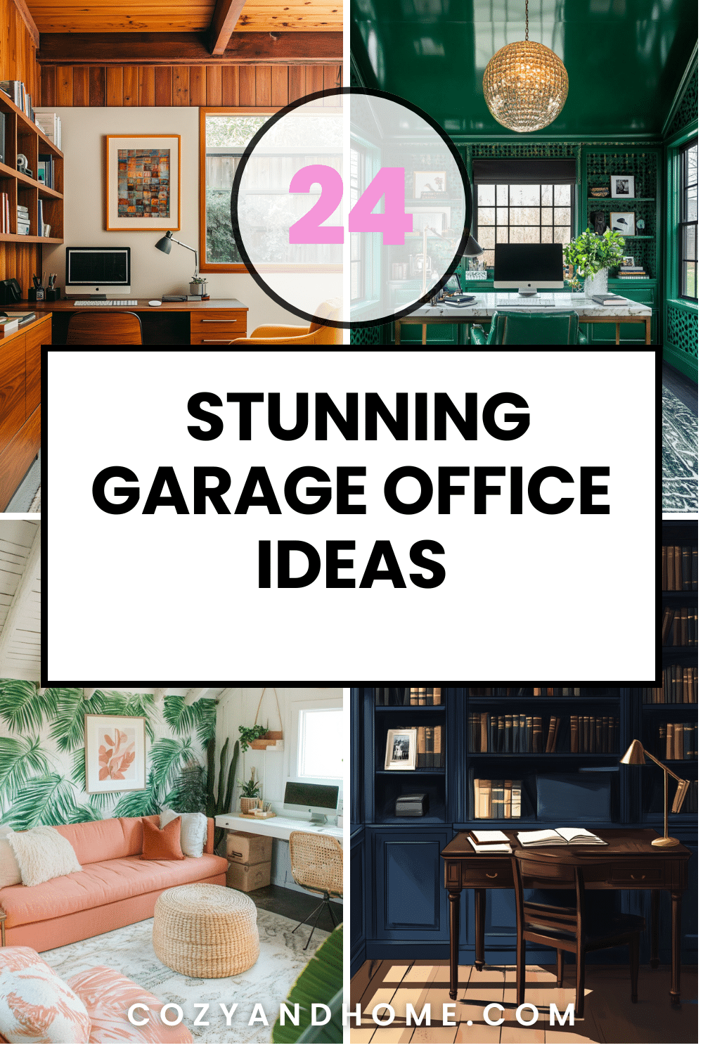 Think teak wood furniture, mustard yellow details, and geometric décor that brings vintage character into your garage office conversion.